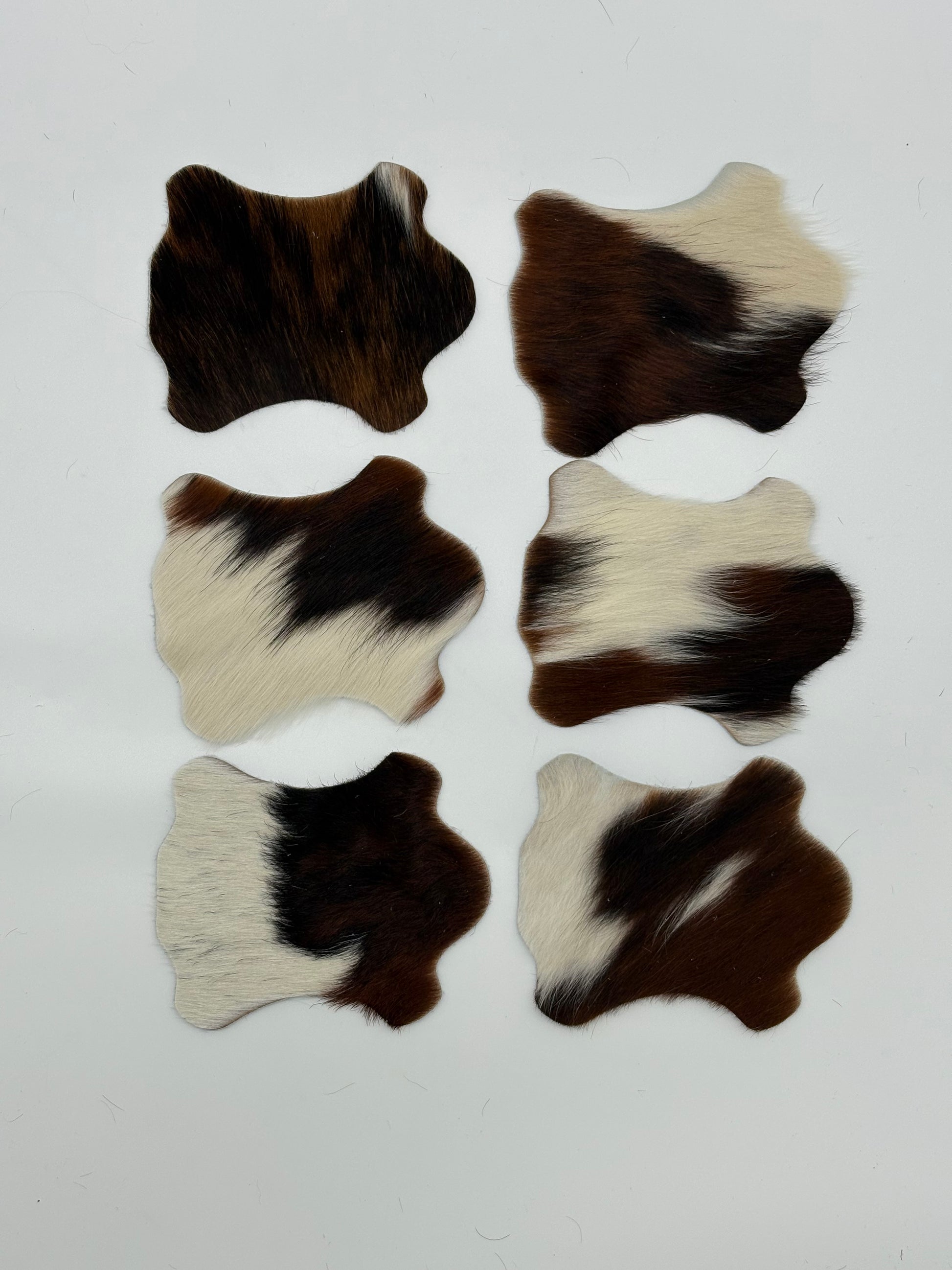 Een set van 6 onderleggers voor glazen uit koevacht.
